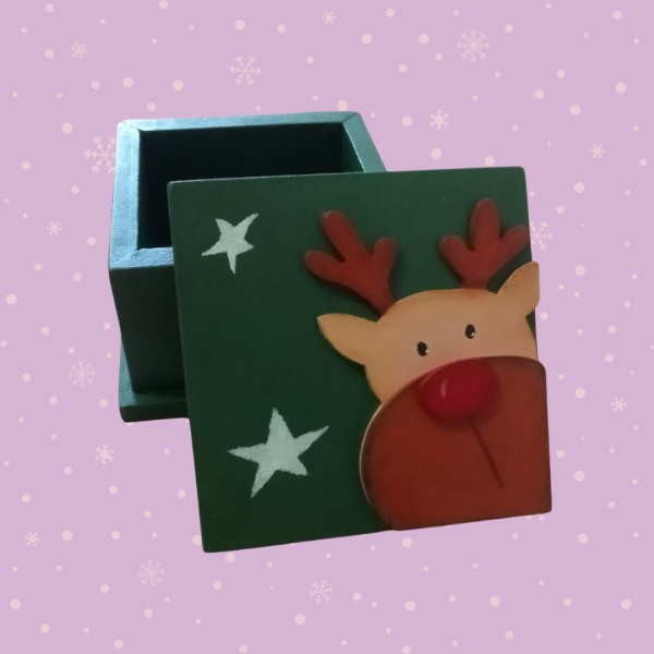 Caja navideña elaborada en MDF y pintada a mano de 10 cm * 10 cm * 7 cm