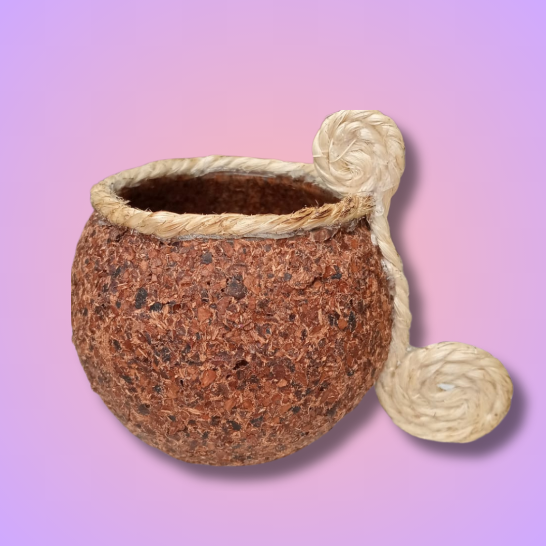 Porta Velas de residuos de cacao y cordón de yute y de resina